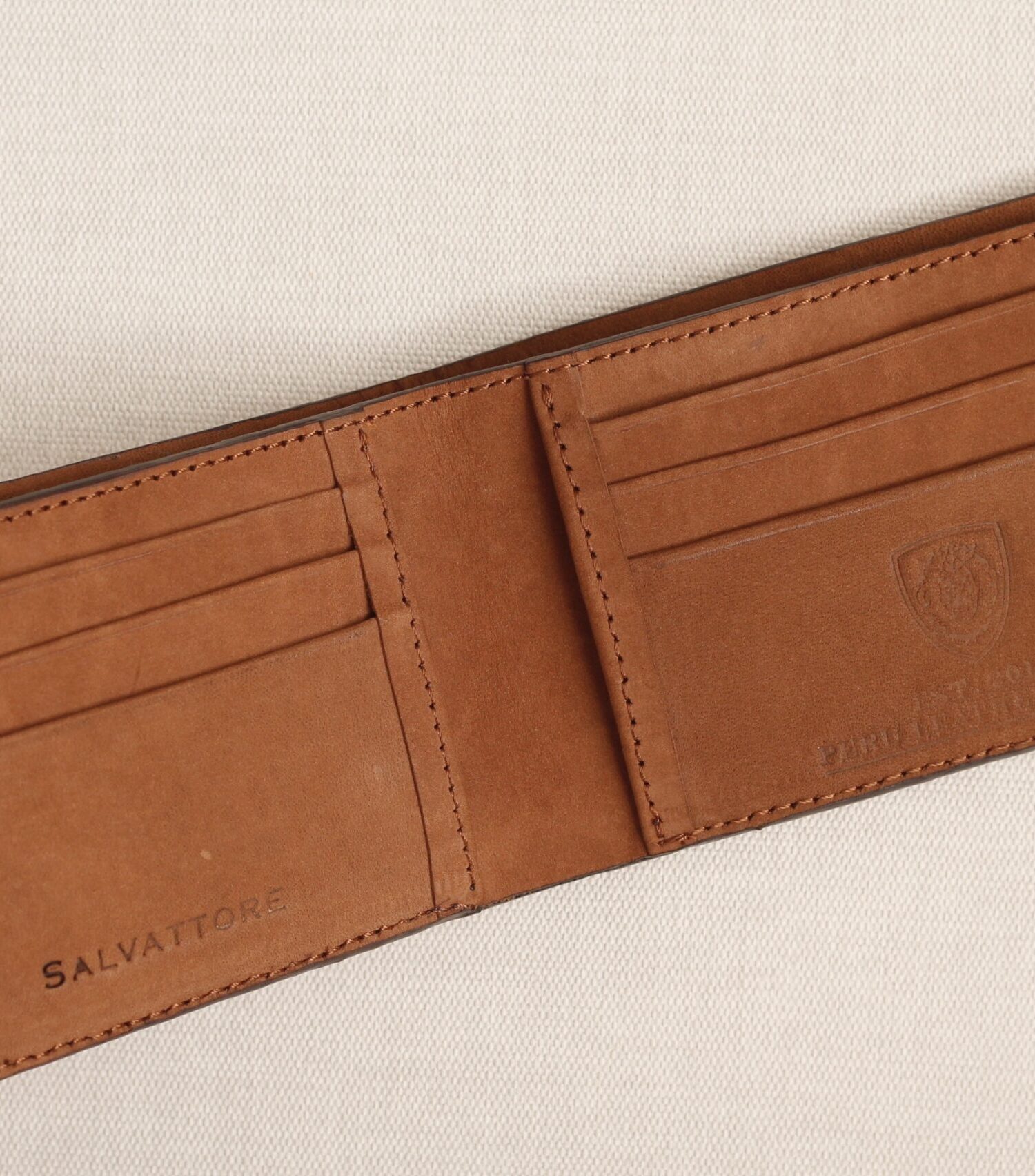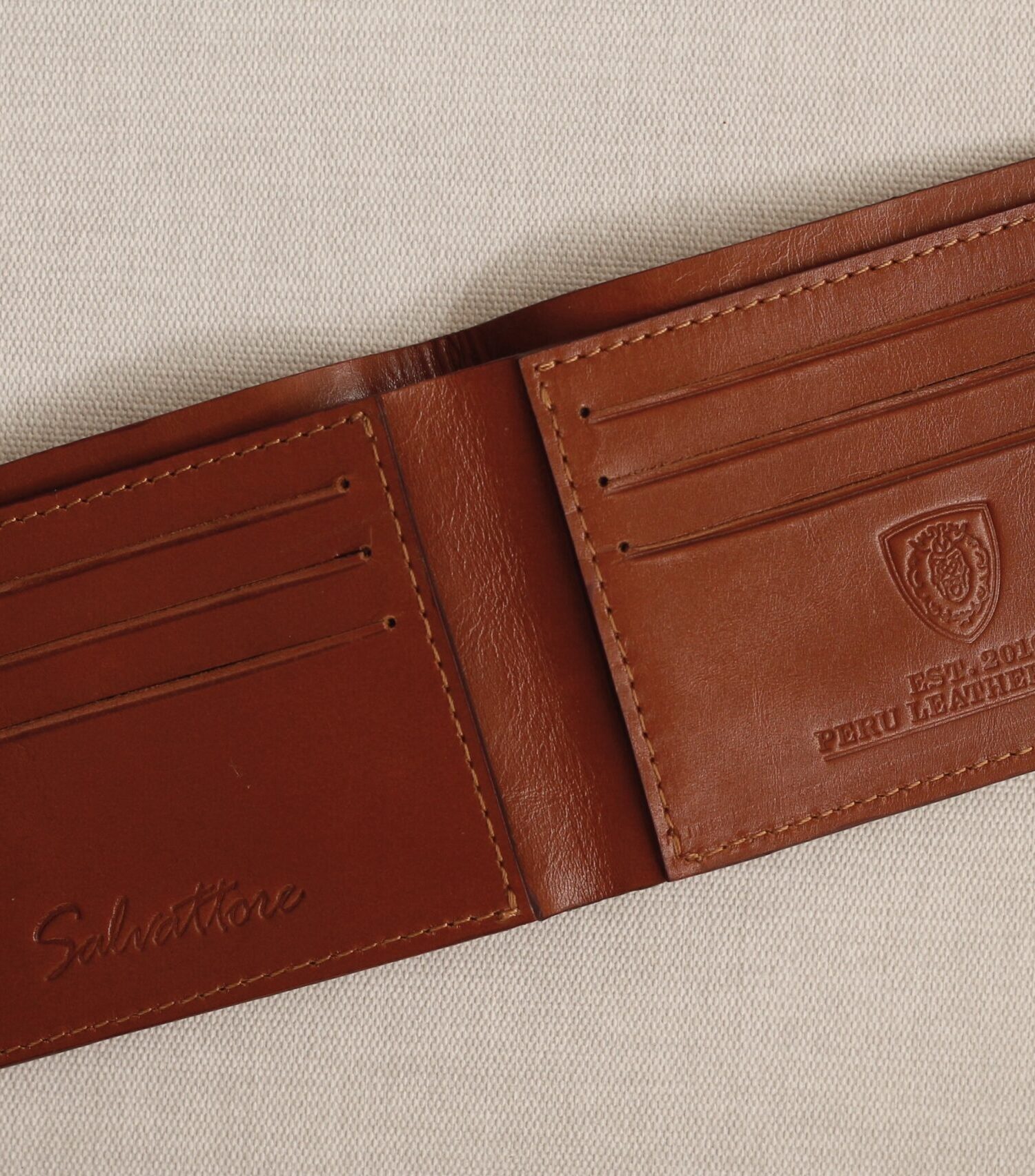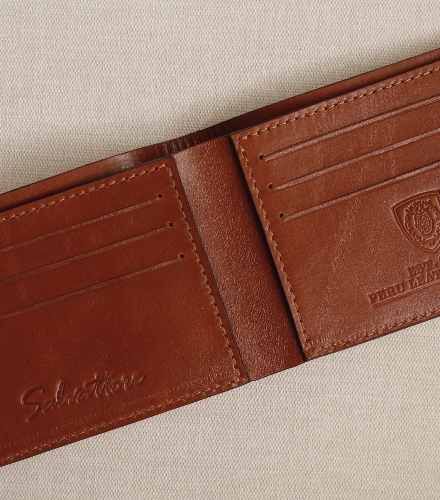 Billetera doble tono Ocre – Gold detail / Interior vison
