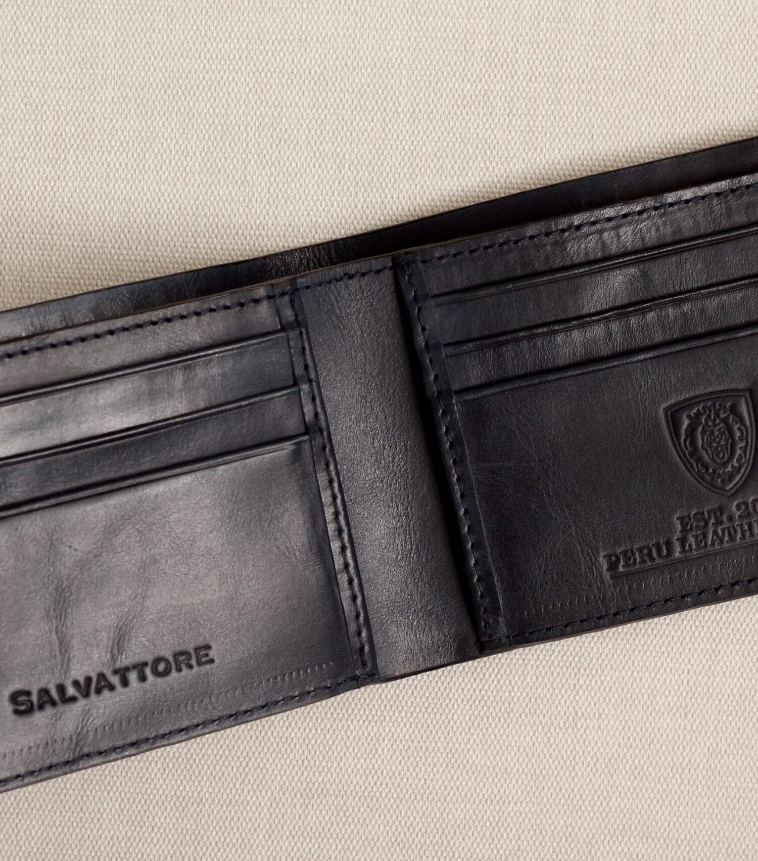 Billetera doble tono Ocre / Interior blue navy
