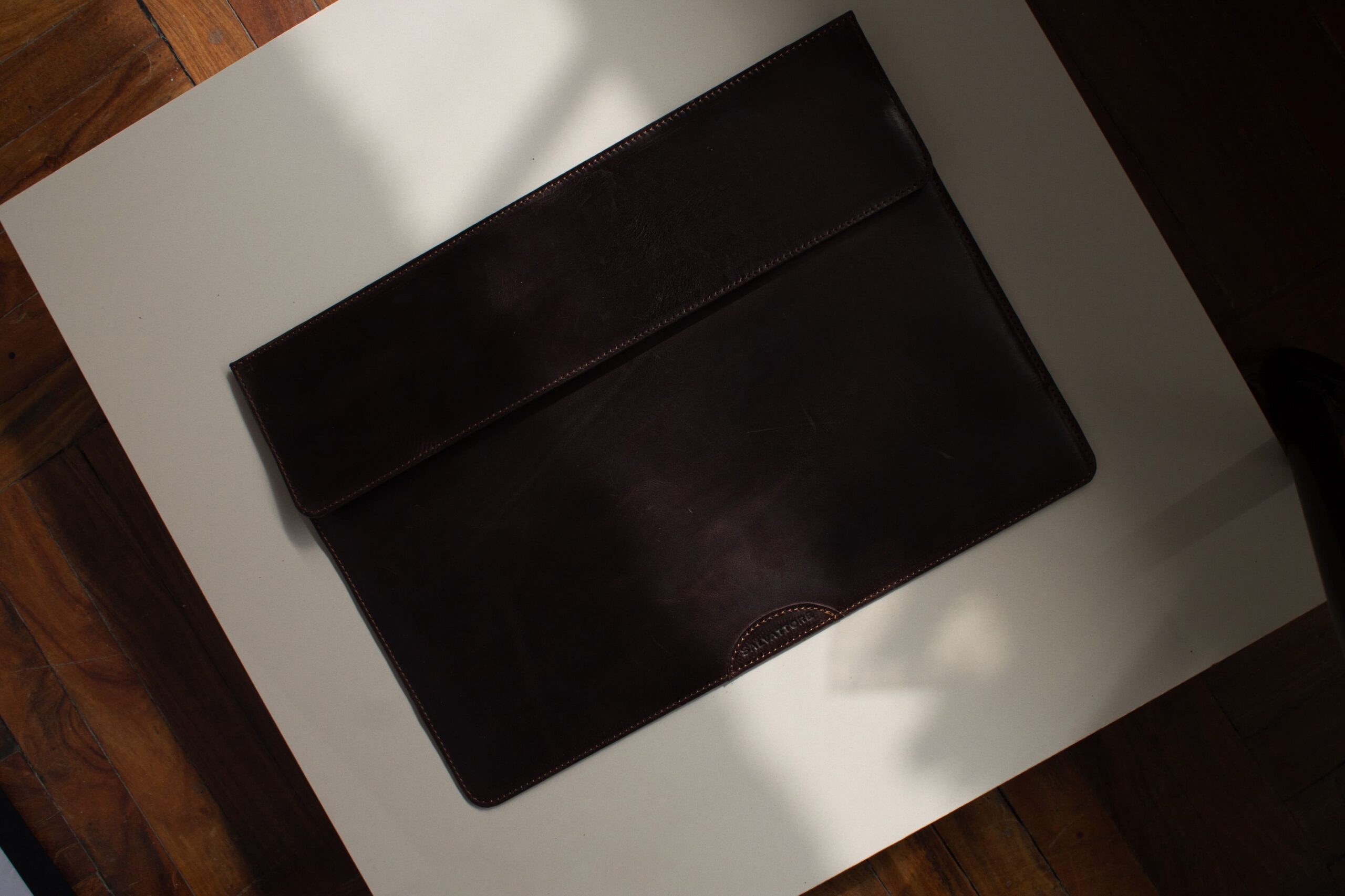 Un sobre confeccionado para transportar de manera segura tu MacBook o laptop, puedes llevar algunos documentos en el bolsillo que encontrarás en la parte posterior y los acabados en crudo interiormente protegerán de rayaduras. Diseñado exclusivamente en L’atelier Salvattore conservando siempre el cuidado en los detalles y empleando excelente cuero vacuno importado.